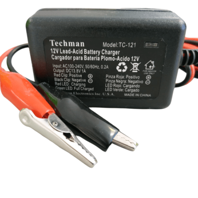 • Cargador Techman TC-123 de 12V y 3Ah, ideal para cargar baterías ácido-plomo de forma segura y eficiente.Cargador Techman TC-123 de 12V y 3Ah, ideal para cargar baterías ácido-plomo de forma segura y eficiente.