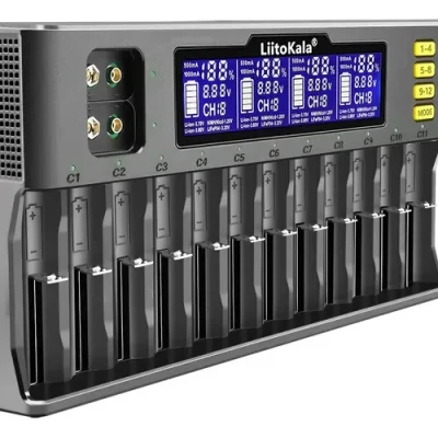 CARGADOR UNIVERSAL INTELIGENTE LIITOKALA 12 BAHIAS PANTALLA LCD RCR123