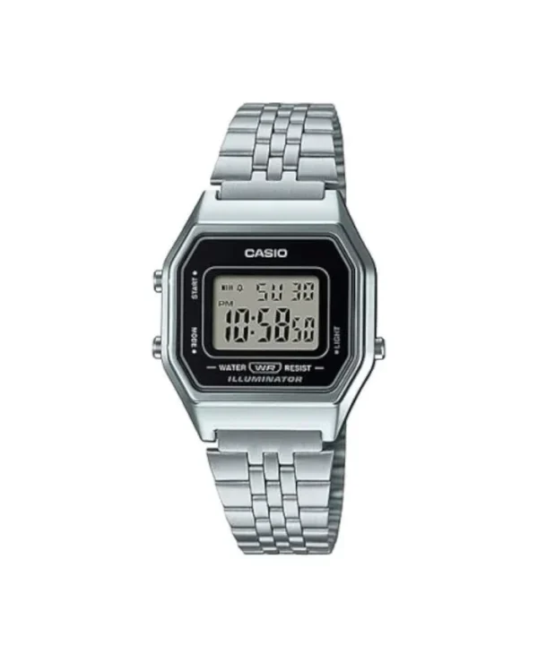 El Casio LA680WA-1DF es un reloj digital con un diseño retro en acero inoxidable, cronómetro, alarma diaria y luz LED. Ideal para complementar cualquier estilo.
