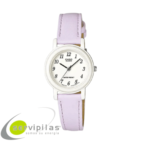 Reloj Casio de dama, resistencia al agua de uso normal (lavado de manos y lluvia) pulso de cuero y caja del reloj en plástico, garantía de un año sobre maquinaria y pila.