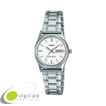 Reloj Casio para dama, resistencia al agua de 50M (lavado de manos, lluvia y duchas de agua fría) pulso en cuero y caja del reloj en acero inoxidable, garantía de un año sobre maquinaria y pila.