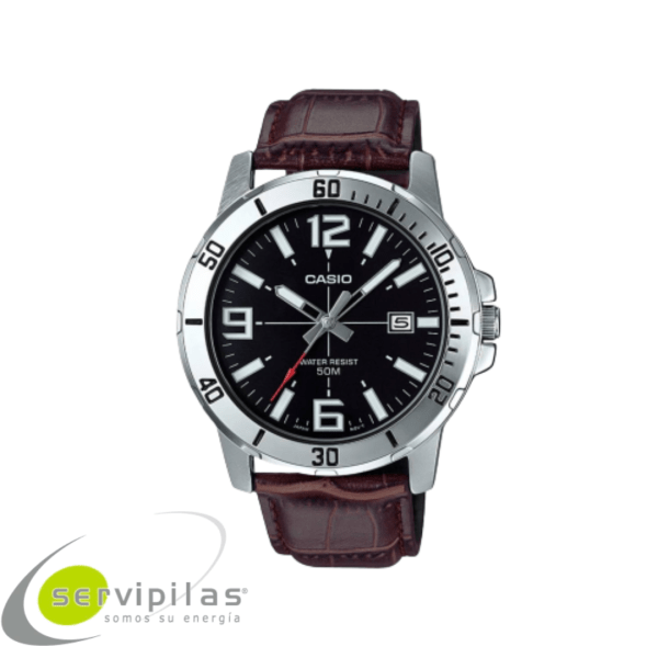 Reloj Casio para hombre, resistencia al agua de 50M (lavado de manos, lluvia y duchas de agua fría) pulso en cuero y caja del reloj en acero inoxidable, garantía de un año sobre maquinaria y pila.