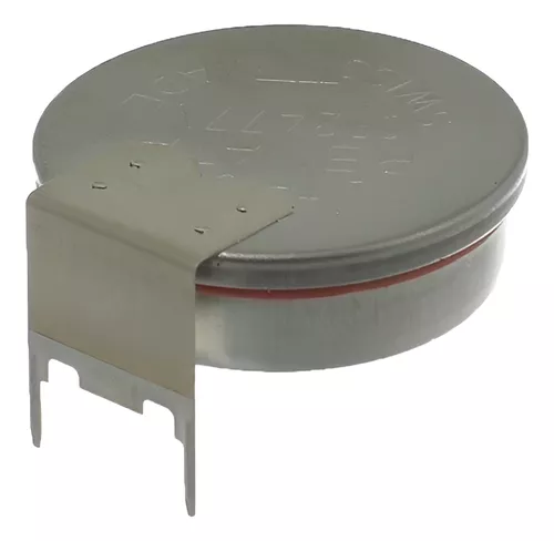 Pila botón CR2477N NRH-LF Renata con pines, de 3V y larga duración, ideal para dispositivos electrónicos y aplicaciones industriales.